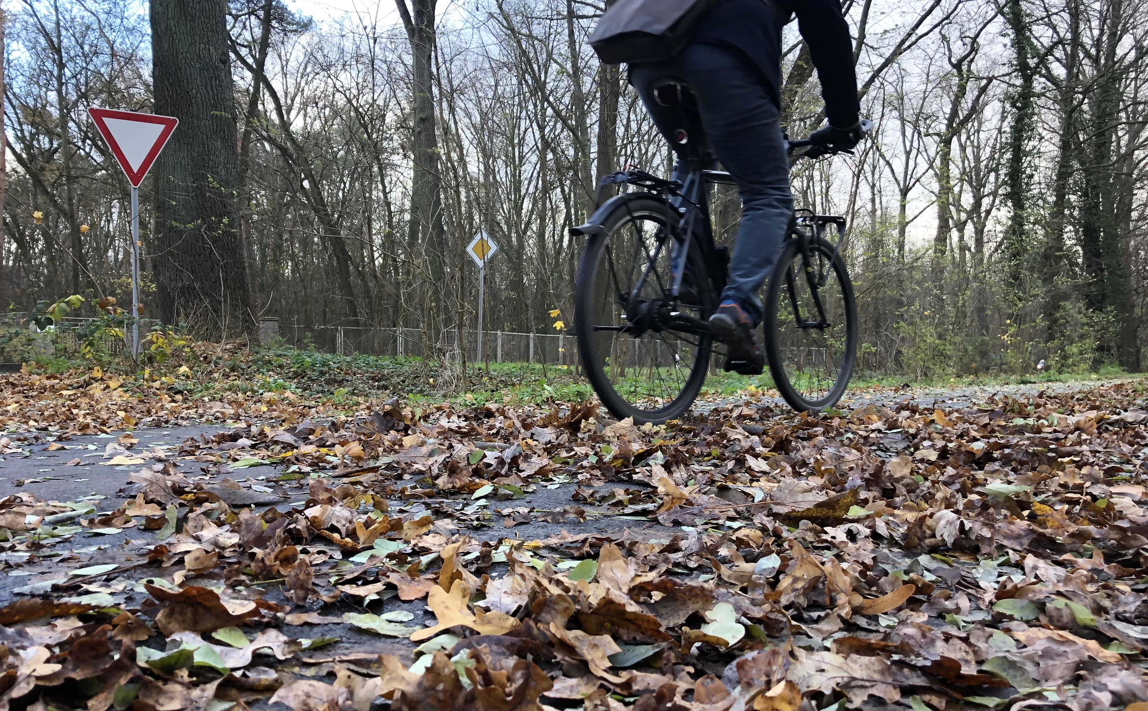Wenn die Temperaturen fallen, kommen auf Radfahrende zusätzliche Unfall-Risiken zu. Nicht gepflegte Radwege bilden mit Laub, Matsch, Eis und Schnee gefährliche Rutschfallen für Zweiradnutzer.